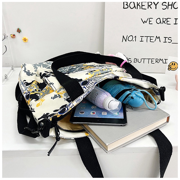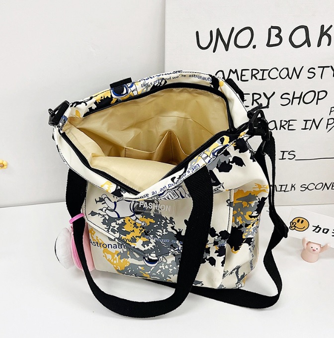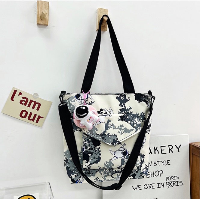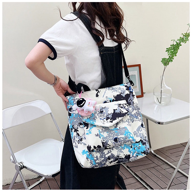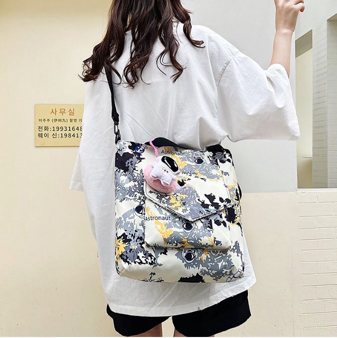 Sản phẩm có kích thước rộng rãi, được chia làm nhiều ngăn tiện lợi. Có các ngăn lớn để đựng các vật dụng cần thiết và nhiều ngăn nhỏ để đựng giấy tờ, tiền, ví… tiện dùng khi đi học, làm việc. Túi xách HARAS được gia công bằng chất liệu vải dù D900 polyester chất lượng cao, khó phai màu và bền bỉ. Bạn sẽ dễ dàng bảo quản và sử dụng được khá lâu. Hiện những sản phẩm được sản xuất bằng chất liệu này đang trở nên rất thịnh hành nhờ độ bền và thẩm mĩ của nó. Sản phẩm được chế tác bằng những đường may tỉ mỉ và chắc chắn, không chỉ mang đến độ bền mà còn mang đến tính thẩm mỹ, tinh tế cao. Phần dây đeo có thể điều chỉnh độ ngắn dài, được may bằng kỹ thuật gấp mép dây viền, thiết kế ôm rất sát hai vai, vững chắc. Tặng kèm móc khóa phi hành gia. Hướng dẫn bảo quản: Không nên để sản phẩm tiếp xúc nhiều với xà bông. Có thể vệ sinh bằng khăn ẩm và các dung dịch làm sạch đã pha loãng. Trong trường hợp không có sẵn dung dịch làm sạch, có thể pha loãng dầu gội đầu và lau sản phẩm nhẹ nhàng với khăn sạch hoặc dùng cồn cùng một chút ít xà phòng để chà nhẹ lên bề mặt vết bẩn. Lau khô hoàn toàn sau khi vệ sinh. Thông tin sản phẩm: Tên sản phẩm: Túi Xách Kết Hợp Túi Đeo Chéo Họa Tiết Thời Trang HR312 - Haras (Tặng Kèm Móc Khóa Phi Hành Gia) Thương hiệu: Haras Chất liệu: Vải dù D900 polyester đạt tiêu chuẩn xuất khẩu, chống thấm, trượt nước, không chất độc hại Kích thước: 37cm x 30cm x 7cm Màu sắc: Xanh ngọc, vàng, đen, hồng, xanh lam Xuất xứ: Việt Nam